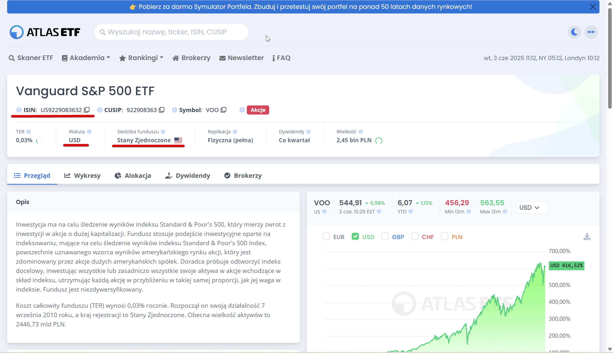 I jeszcze jeden przykład dla odmiany amerykańskiego ETF-u Vanguard S&P 500 ETF: