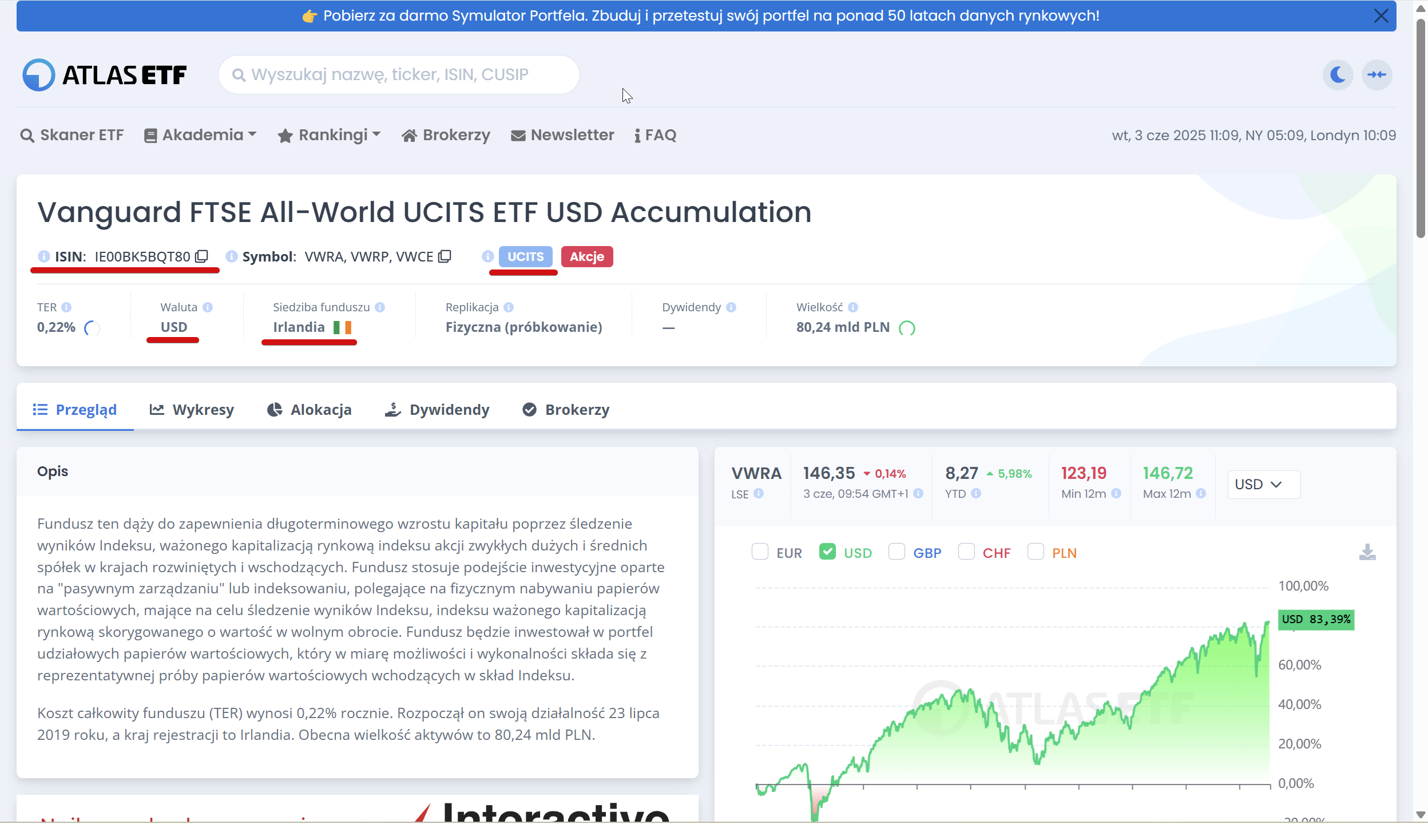 - Xetra (Niemcy, EUR): VWCE,