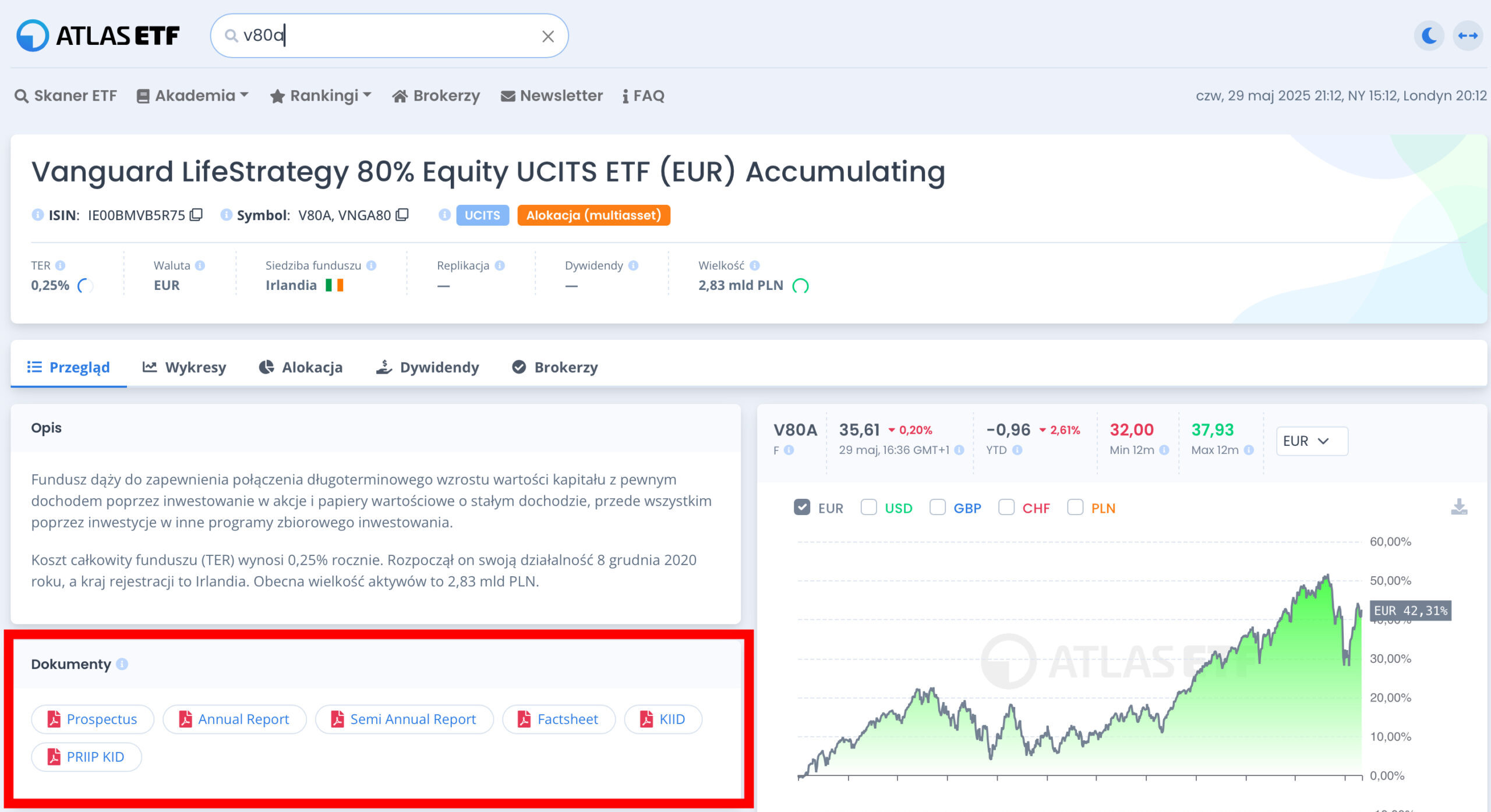 Po wyszukaniu wybranego ETF-u, na atlasetf.pl można znaleźć komplet dokumentów dotyczących danego funduszu.