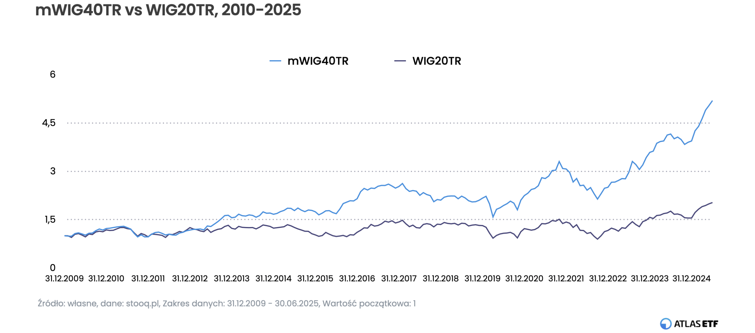 Jeśli chcemy uzyskać ekspozycję na segment spółek o średniej kapitalizacji, ETF oparty o indeks jest świetnym rozwiązaniem przede wszystkim ze względu na swoją transparentność – zawsze wiemy, jakie spółki i w jakich proporcjach znajdują się w portfelu.