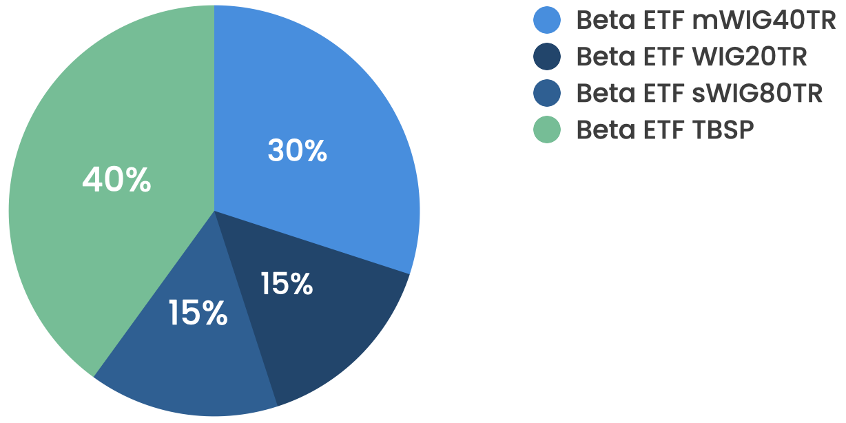 Znaczący udział Beta ETF mWIG40TR pozwala nadal wykorzystywać potencjał polskich spółek o średniej kapitalizacji, które historycznie osiągały lepsze wyniki niż największe firmy z WIG20, natomiast obecność ETF-ów na WIG20TR i sWIG80TR dodatkowo zwiększa dywersyfikację i pozwala korzystać z różnych segmentów polskiego rynku.