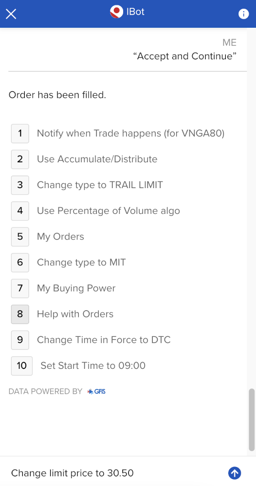 “Order has been filled” – potwierdzenie, że zlecenia zostało zrealizowane. Aby sprawdzić szczegóły, zamykamy iBot’a i przechodzimy do sekcji Trade –> Orders & Trades.
