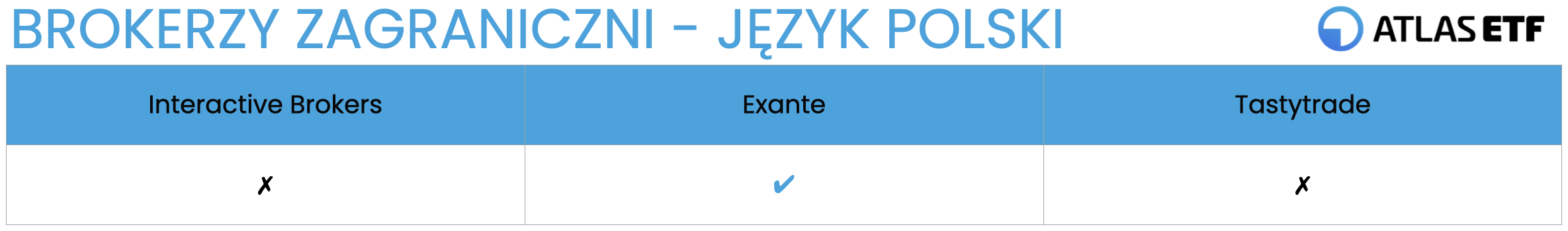 Podstawową barierą inwestowania w ETF-y amerykańskie może być język. Bardzo często jest to angielski. Dla osób, które go nie znają, poruszanie się po platformie czy komunikacja z obsługą klienta mogą być trudne. Ale istnieją też tacy, którzy wychodzą naprzeciw polskojęzycznym klientom. Przykładem jest Exante.
