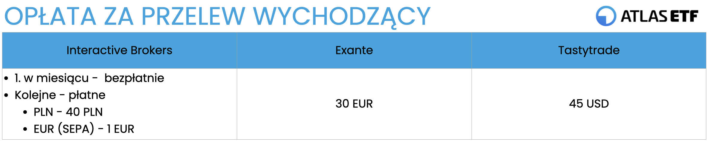 Relatywnie drogo jest w Exante (30 EUR) a najdrożej w Tastytrade (45 USD). Właśnie dlatego korzystanie z Tastytrade jest w praktyce dedykowane osobom z większym kapitałem. Przy małych kwotach opłata za przelew wychodzący może z nawiązką zniwelować oszczędności uzyskanie dzięki niskim prowizjom.