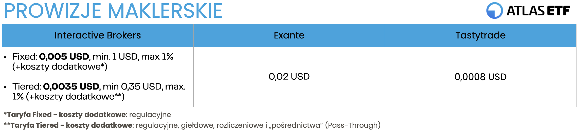 W Exante stawka prowizji jest wyższa – 0,02 USD za jednostkę, ale plus jest taki że nie są stosowane minimalne wartości prowizji, więc w przypadku małych kwot, prowizje efektywnie mogą być niższe. Najtaniej jest w Tastytrade – prowizja wynosi 0,0008 USD (minimalnej wartości prowizji również nie ma).
