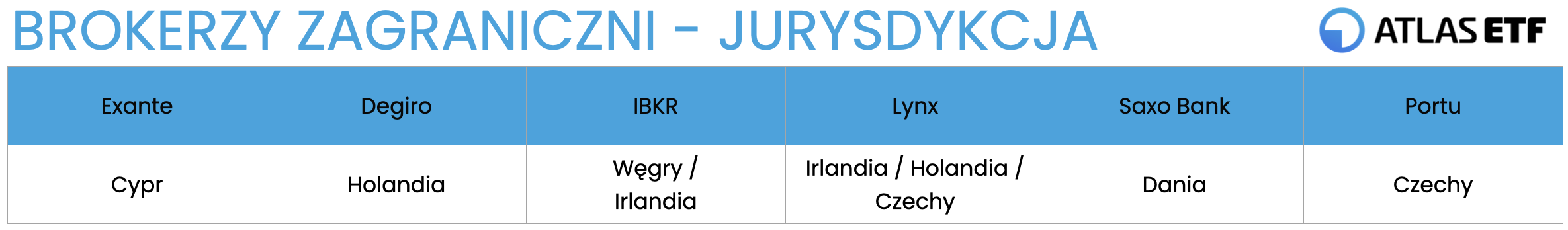 Brokerzy, u których polscy inwestorzy mogą otwierać rachunki, bywają zarejestrowani w różnych krajach. Do krajów postrzeganych jako najbardziej bezpieczne należą najczęściej kraje Europy Zachodniej, jak Holandia, Irlandia, czy Dania.
