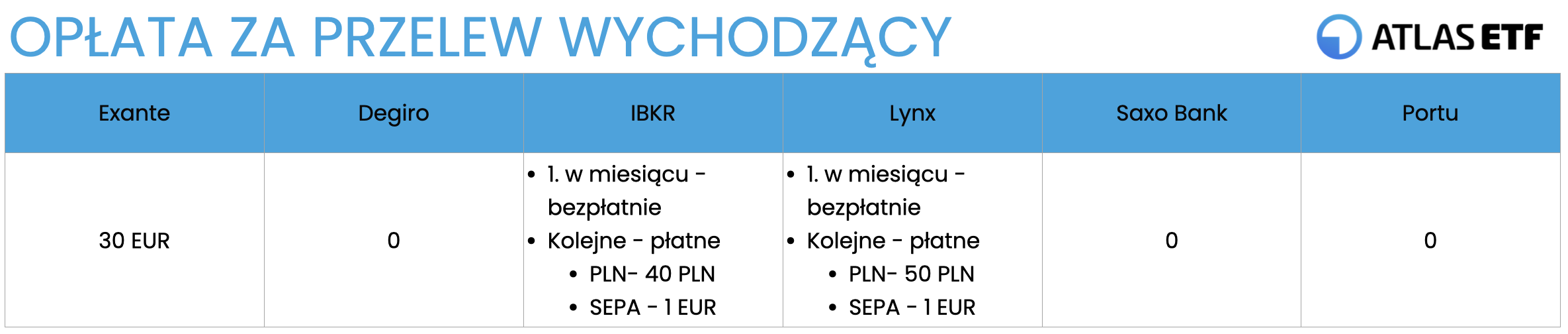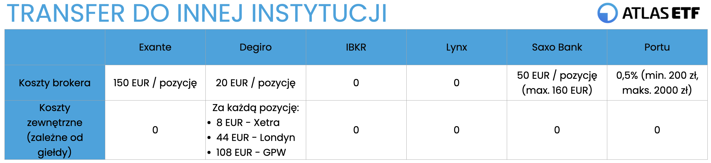 W razie, gdyby warunki prowadzenia rachunku maklerskiego się pogorszyły lub inny broker wprowadził lepszą ofertę, ETF-y można przenieść bez ich sprzedawania (co mogłoby generować zdarzenie podatkowe). W Interactive Brokers i Lynx taka usługa jest bezpłatna.