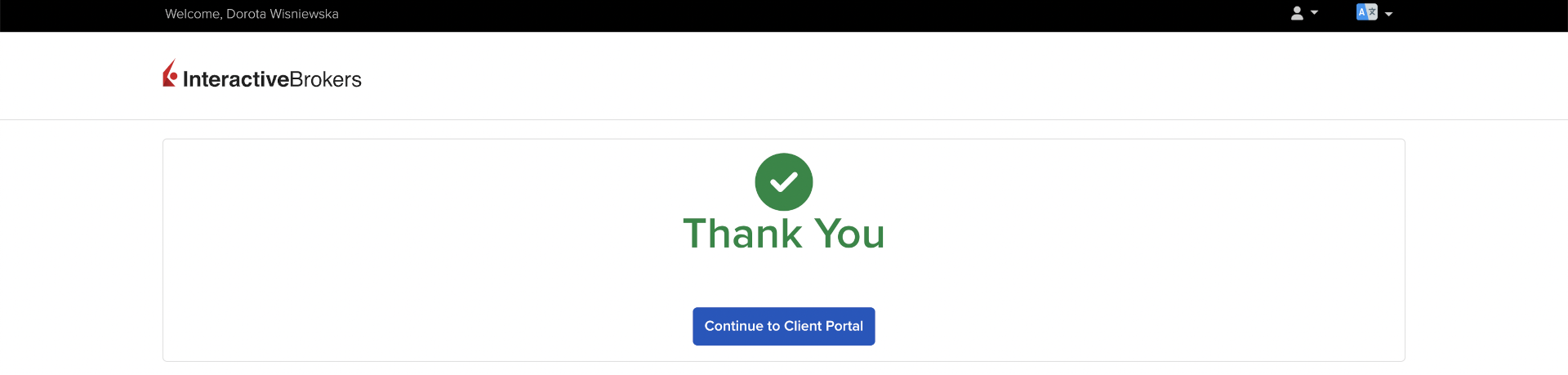 Wyświetli nam się upragnione potwierdzenie, że proces rejestracji został zakończony i możemy przejść do portalu klienta. Klikamy Continue do Client Portal.